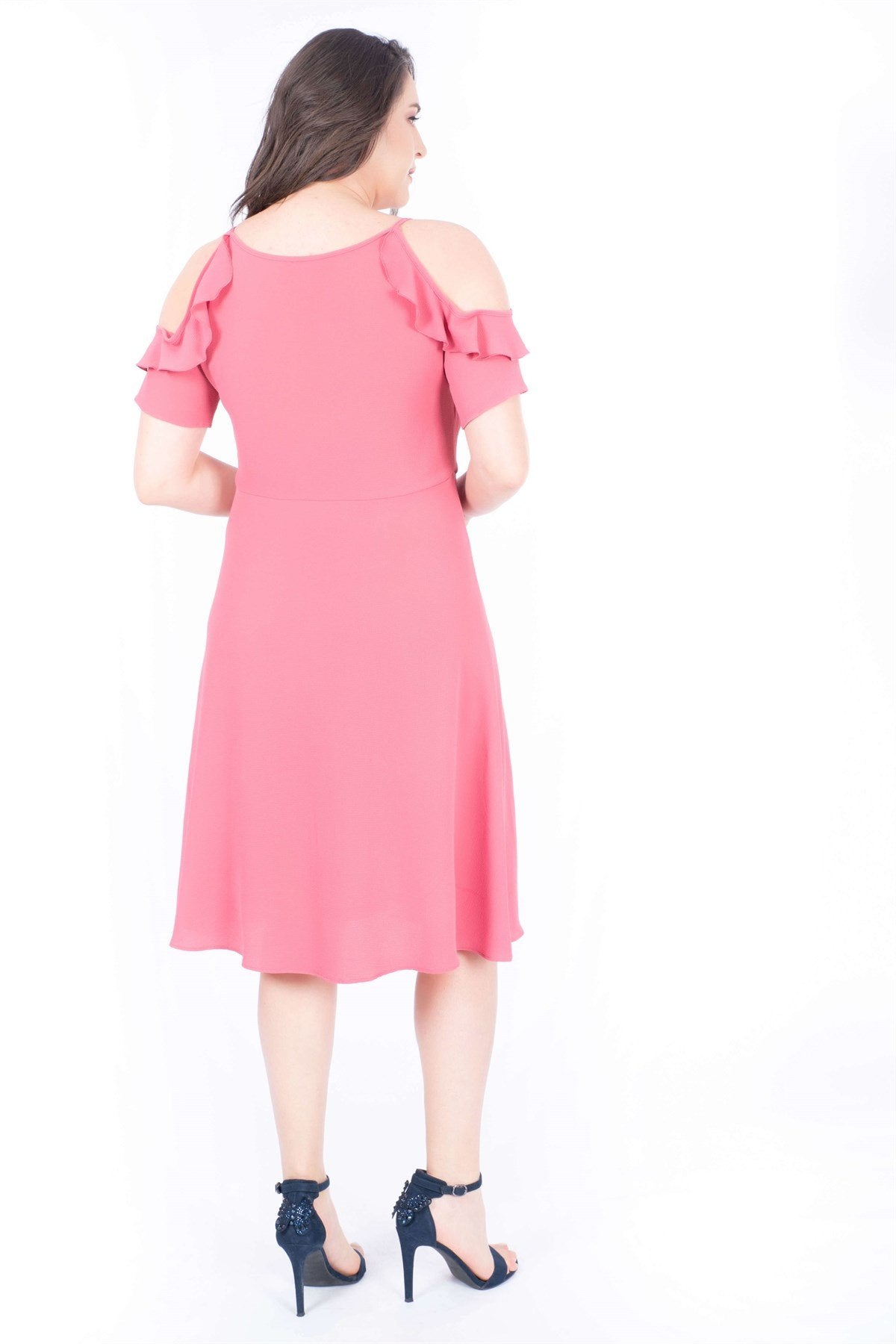 Yaka Çerçeveli Kolları Volanlı Elbise