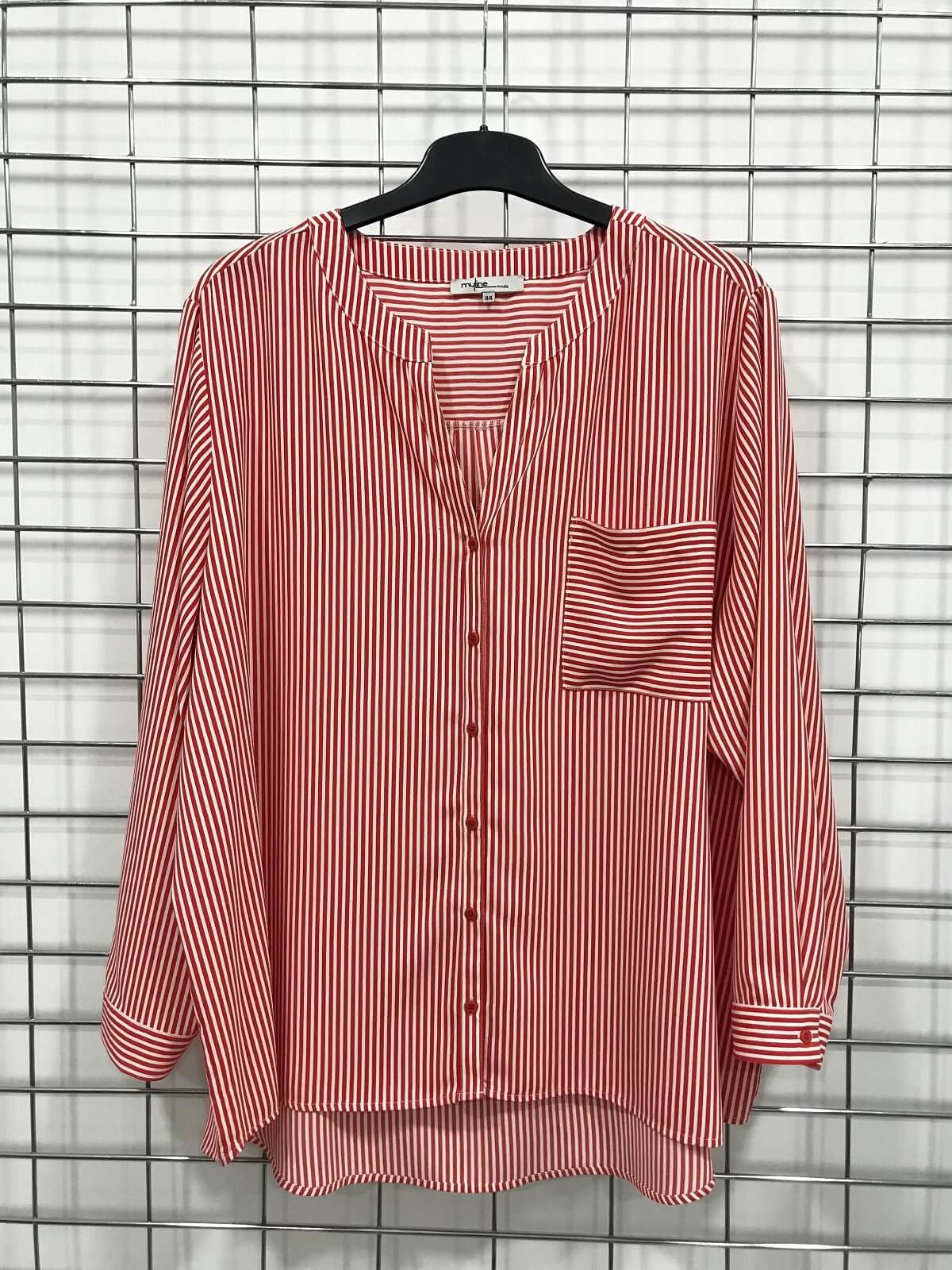 Myline- V Yaka Cep Detaylı Gömlek-Büyük Beden Outlet-45899