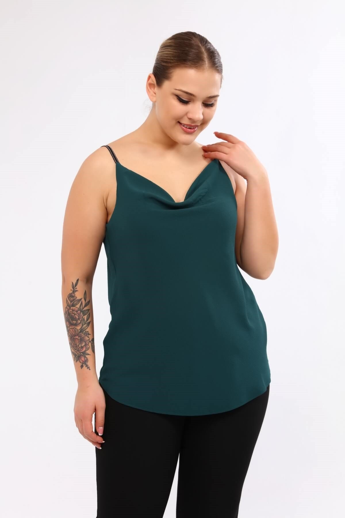 Myline-Degaje Yaka İp Askılı Bluz-Büyük Beden Bluz-66615