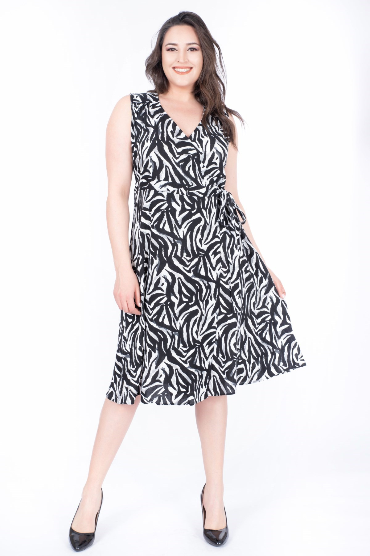 Myline-Desenli Anvelop Elbise-Büyük Beden Günlük Elbiseler-23977