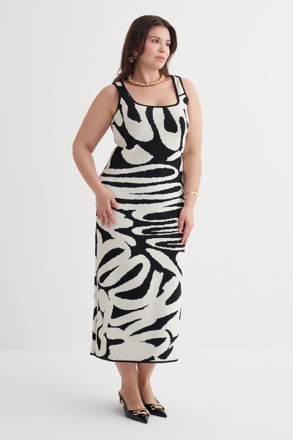 Myline-Desenli Triko Elbise-Büyük Beden Elbise-160082