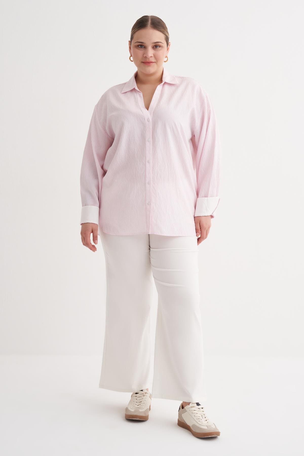 Myline-İnce Çizgili Gömlek-Büyük Beden Gömlek-149963