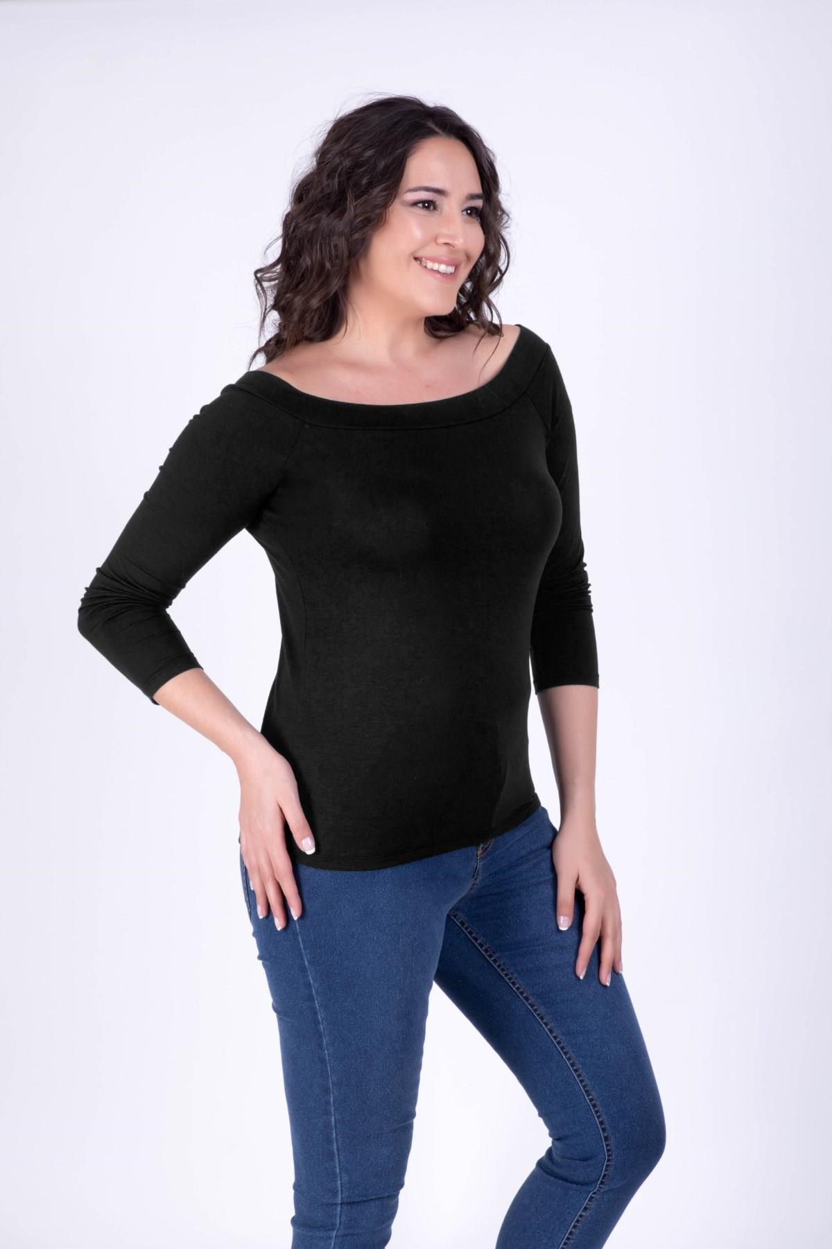 Karmen Yaka Siyah Tişört (34376)