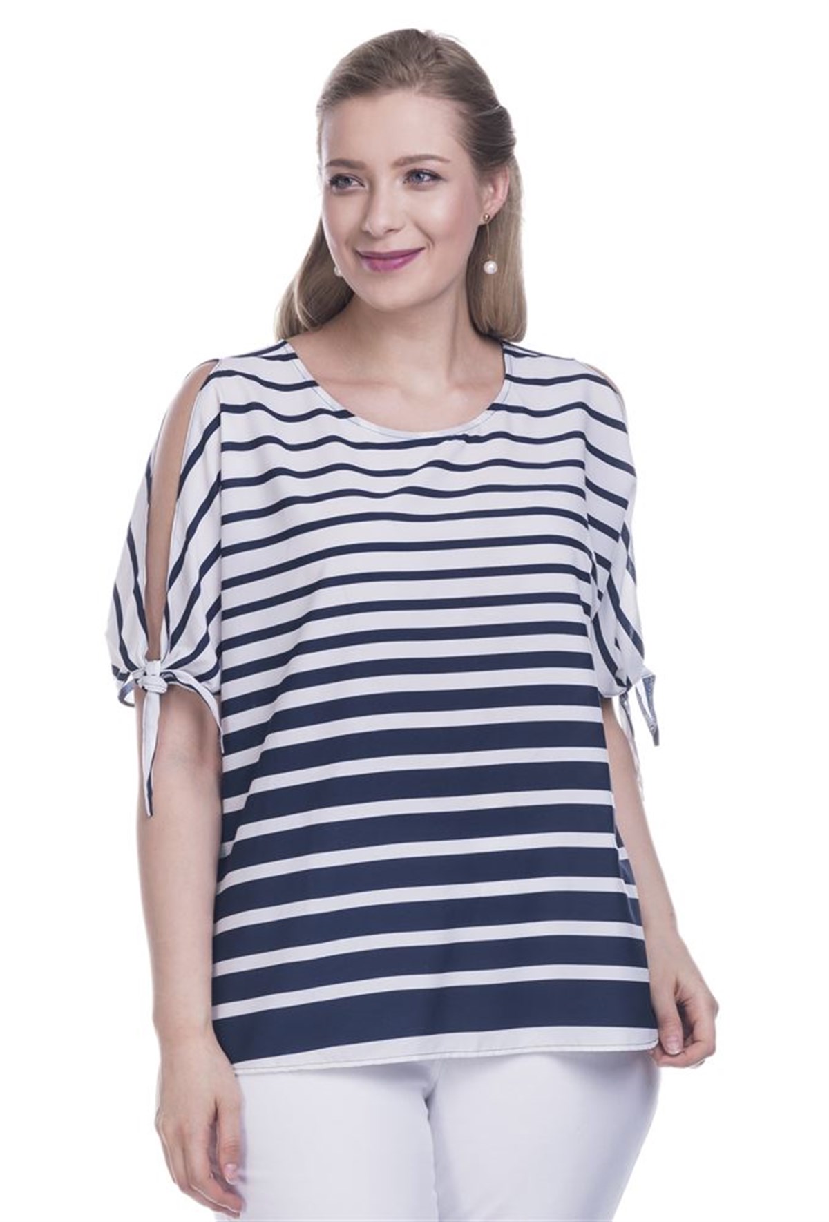 Kol Detaylı Çizgili BluzMYLINE12516-m