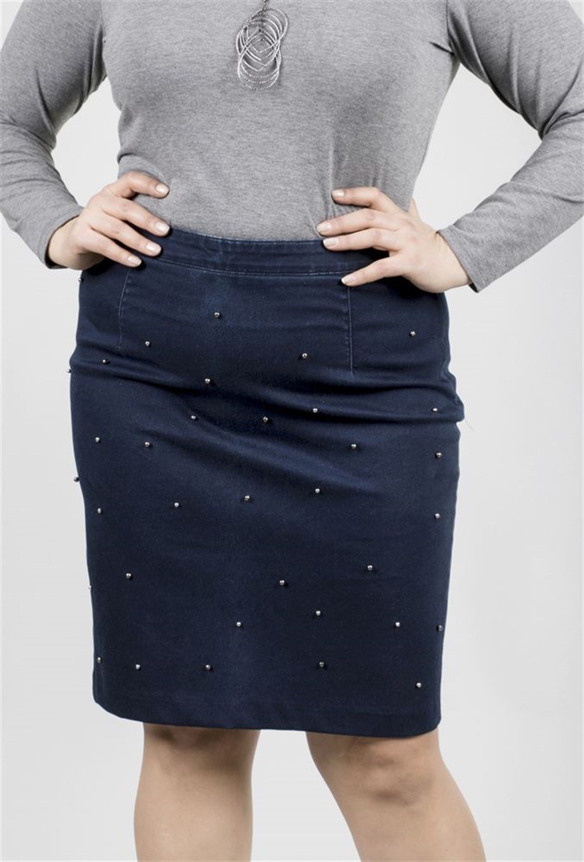 Önü İnci Taşlı Detaylı Denim Etek (23559-m)