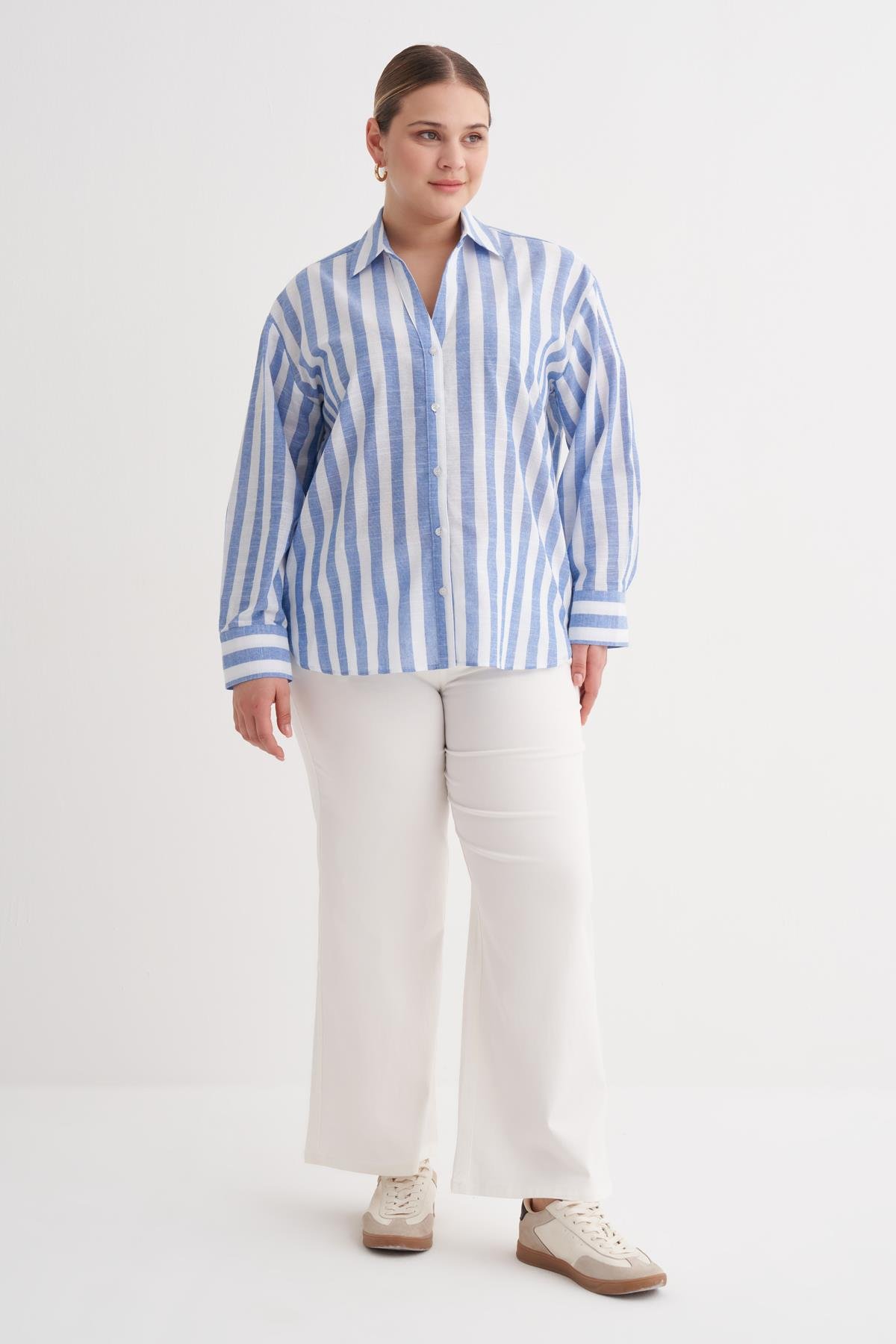 Myline-V Yaka Çizgili Gömlek-Büyük Beden Gömlek-149964