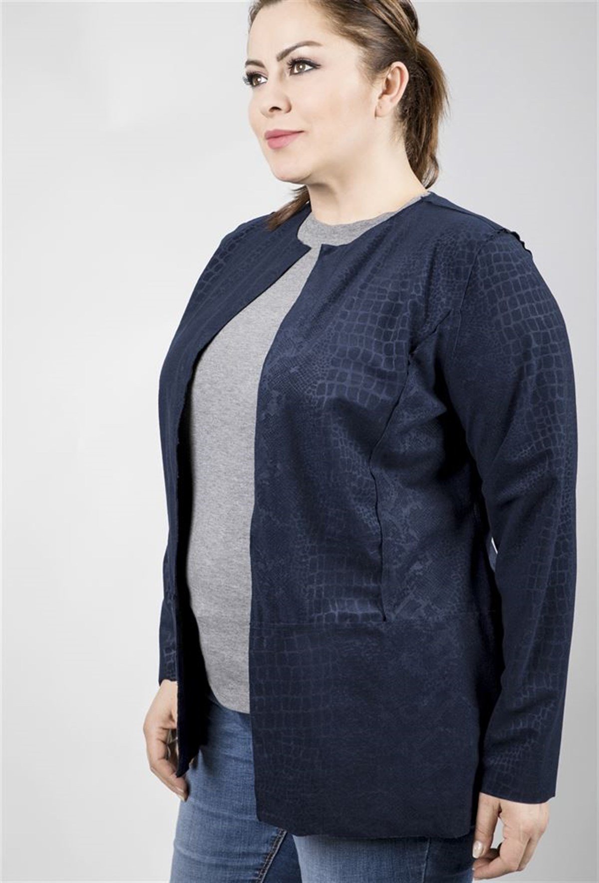 Yılan Desenli Lacivert Süet Ceket (23498-m)